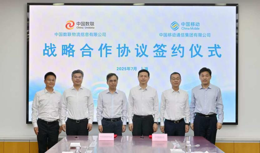 7月26日,中国数联物流信息有限公司与中国移动通信集团有限公司在沪签署战略合作协议。中国数联物流党委书记、董事长张健,党委副书记、总经理张义,中国移动党组书记、董事长杨杰,党组成员、副总经理张冬共同见证签约。中国数联物流党委常委、副总经理曾祥展与中国移动党组成员、副总经理程建军代表双方签署协议。